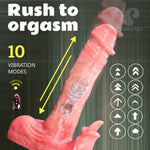 A Realistic Thrusting Dildo Licking Vibrator, Sex Toy Silicone Dildo Vibrator with 10 Vibrations, 10 Thrusting and Heated Licking Modes for G-Spot Stimulation, Remote Control Adult Toy for Female Male